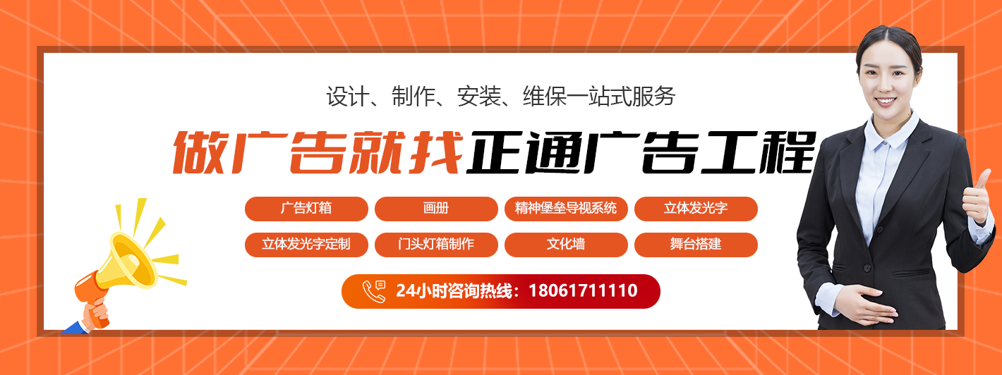 南京正通廣告工程有限公司以南京為中心輻射附近省市,專注于企業廣告一站式服務的企業。我們擁有專業設計、制作、 生產、安裝等年輕的技術隊伍,有先進的現代化設備,能夠為客戶提供優質、高效、專業的服務。正通廣告以客戶的需求為發展目標,始終以質量保證,誠信經營,完美服務的理念,竭誠為客戶提供優質的產品和完善的服務,贏得諸多客戶的信賴,歡迎廣大新老客戶蒞臨指導。